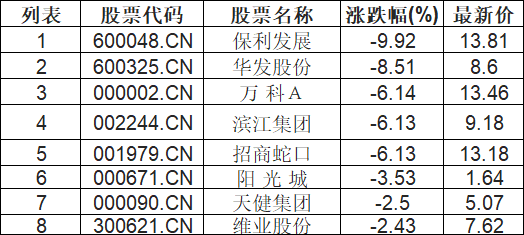 租售同权板块下挫,保利发展(600048.CN)跌9.92%