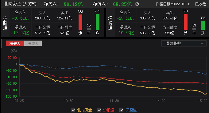 资金动向:31日北向资金净卖出约90亿元 10月累计净卖出573亿元