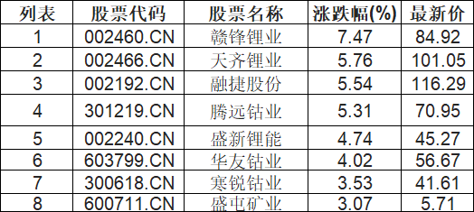 能源金属板块拉升,赣锋锂业(002460.CN)涨7.47%
