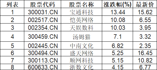 游戏板块高开,宝通科技(300031.CN)涨13.44%