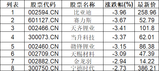 固态电池板块下挫,比亚迪(002594.CN)跌3.96%