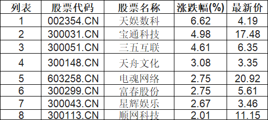 游戏板块拉升,天娱数科(002354.CN)涨6.62%
