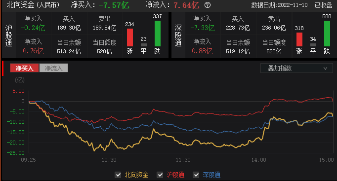 资金动向:北向资金全天净卖出7.57亿元 连续4日净卖出