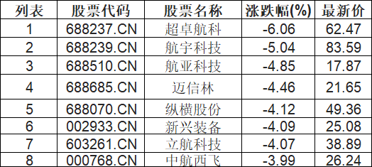 航天航空板块下挫,超卓航科(688237.CN)跌6.06%