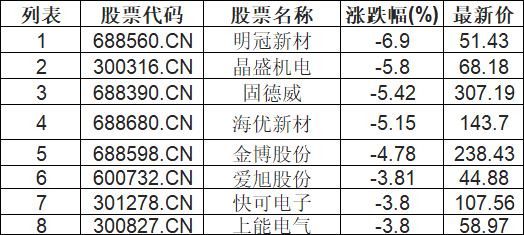 光伏设备板块下挫,明冠新材(688560.CN)跌6.9%