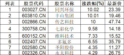 钠离子电池板块拉升,同兴环保(003027.CN)涨10.02%