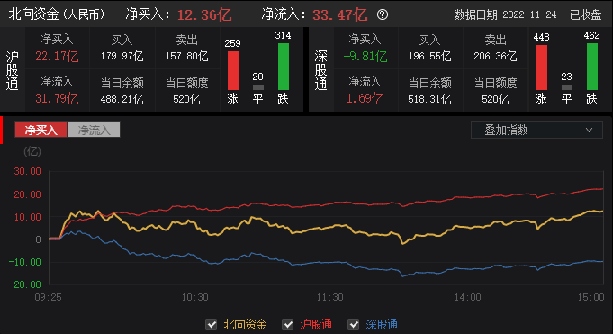 资金动向:北向资金全天净买入12.36亿元,沪深股通延续分化