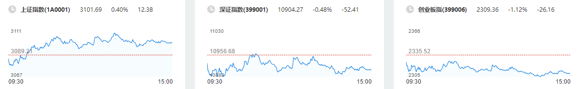 在利空消息的影响下,A股三大股指11月25日集体低开。金融地产的走强带动沪指快速翻红并收复3100点关口,而创指则保持低位震荡。午后沪指维持高位震荡,而创指继续弱势震荡,一度创下日内新低。从盘面上看,金融、地产、基建、电信、煤炭上涨;题材股尽数回落,储能、中药、光伏、钠离子电池、半导体跌幅靠前。