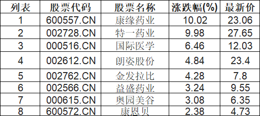 毛发医疗板块拉升,康缘药业(600557.CN)涨10.02%