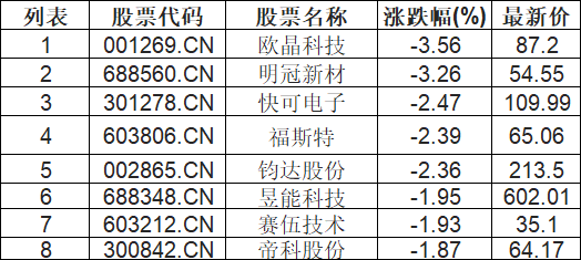 光伏设备板块低开,欧晶科技(001269.CN)跌3.56%