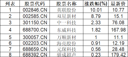 复合集流体板块高开,英联股份(002846.CN)涨10.01%