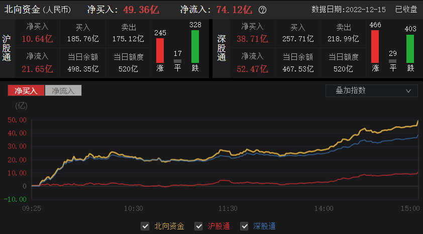 资金动向:北上资金今日净买入49.36亿元