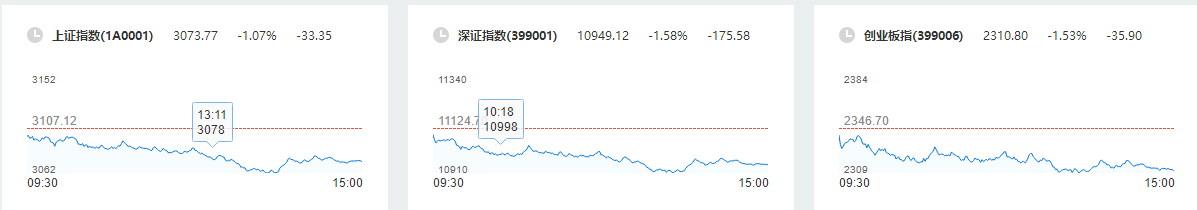 12月20日,A股三大指数集体收跌,沪指失守3100点关口。截至收盘沪指跌1.07%,深成指跌1.58%,创业板指跌1.53%。两市超2600只个股飘绿。