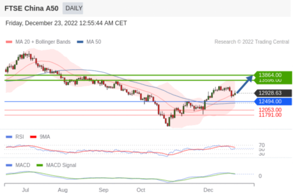 备选策略: 如跌破 12494 ,FTSE China A50 index 目标方向定在 12053 和 11791 。