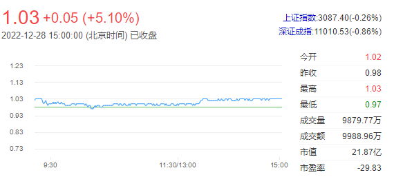 重要资讯:沪深交易所2022年12月28日公布的交易公开信息显示,*ST金洲因成为S、ST、*ST连续三个交易日内涨幅偏离值累计达到12%上榜。*ST金洲当日收报1.03元,涨跌幅5.10%,换手率8.15%,成交额9988.96万元。异常期间12月26日至12月28日,期间涨幅15.73%,累计偏离值14.48%,区间成交额1.66亿元。