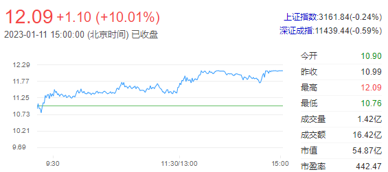 重要资讯:沪深交易所2023年01月11日公布的交易公开信息显示,数源科技因成为当日涨幅偏离值达7%的证券上榜。数源科技当日收报12.09元,涨跌幅10.01%,偏离值10.66%,换手率36.60%,成交额16.42亿元。