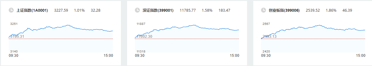 A股三大指数集体走强,截至收盘,沪指涨1.01%,深证成指涨1.58%,创业板指涨1.86%。两市超3800股上涨,成交额超9000亿元。盘面上看,证券、数据安全、医疗服务、半导体等板块涨幅居前,煤炭、传媒等少数板块下跌。