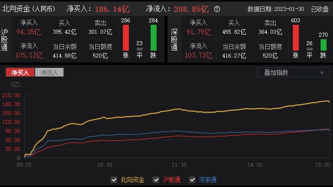 资金动向:北向资金净流入超186亿元