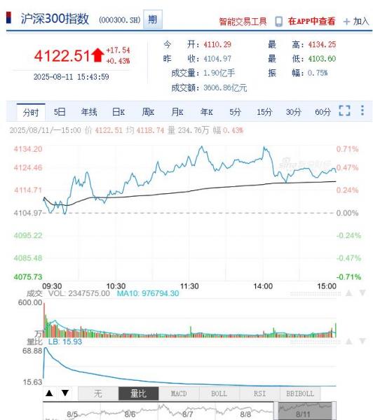 A股收盘情况 A股三大指数今日集体上涨,沪指六连阳再创今年以来新高。截止收盘,沪指涨0.34%,收报3647.55点;深证成指涨1.46%,收报11291.43点;创业板指涨1.96%,收报2379.82点。沪深两市成交额达到18270亿,较上周五放量1167亿。 北向资金净流入情况 8月8日北向资金TF买入及卖出成交额为30.30亿