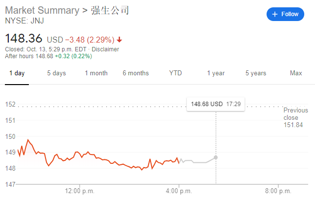 (强生公司(NYSE:JNJ)股价走势图)