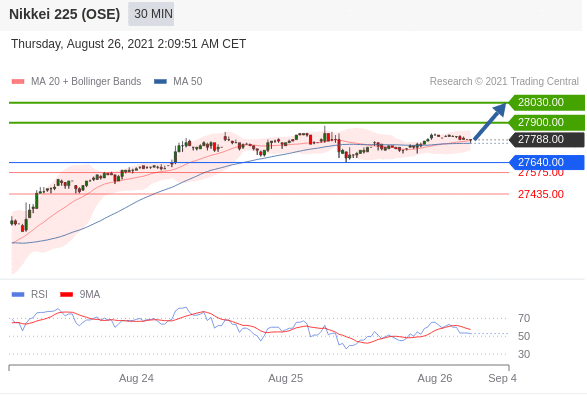 在 27640.00 之上,看涨,目标价位为 27900.00 ,然后为 28030.00 。