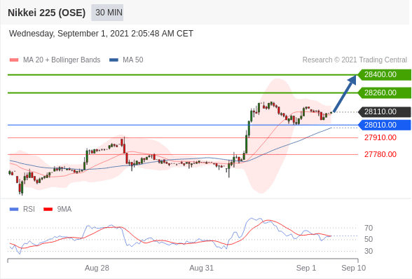 交易策略: 在 28010.00 之上,看涨,目标价位为 28260.00 ,然后为 28400.00 。