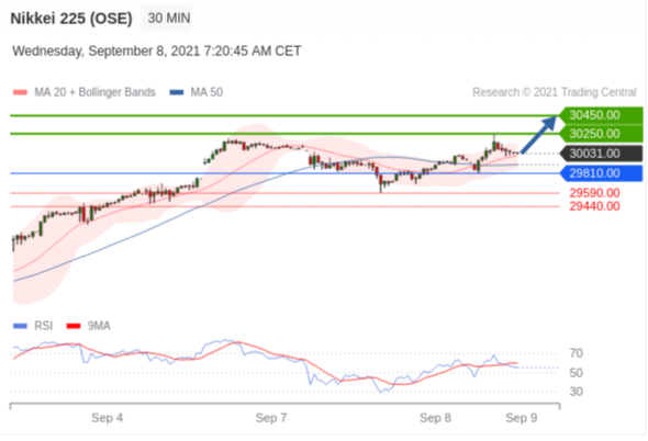 交易策略: 在 29810.00 之上,看涨,目标价位为 30250.00 ,然后为 30450.00 。