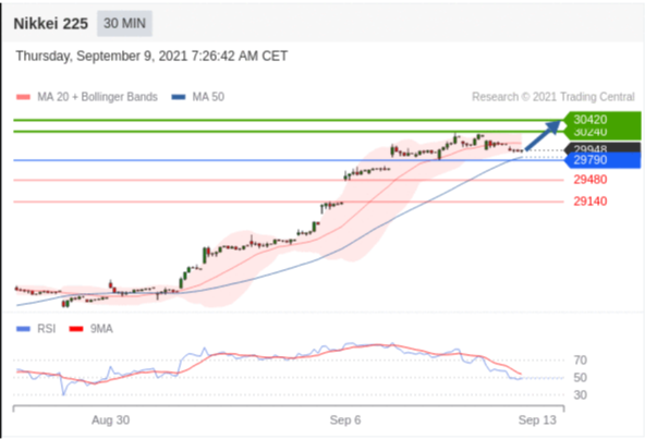 交易策略: 在 29790 之上,看涨,目标价位为 30240 ,然后为 30420 。