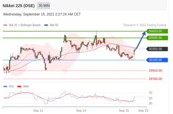 交易策略: 在 30100.00 之上,看涨,目标价位为 30500.00 ,然后为 30620.00 。