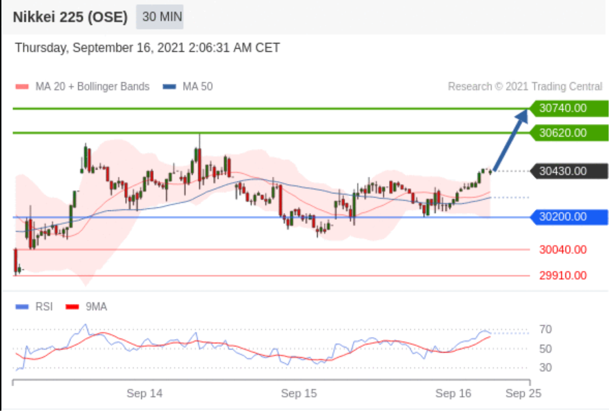 交易策略: 在 30200.00 之上,看涨,目标价位为 30620.00 ,然后为 30740.00 。