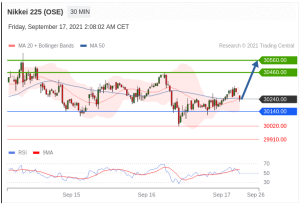 交易策略: 在 30140.00 之上,看涨,目标价位为 30460.00 ,然后为 30560.00 。