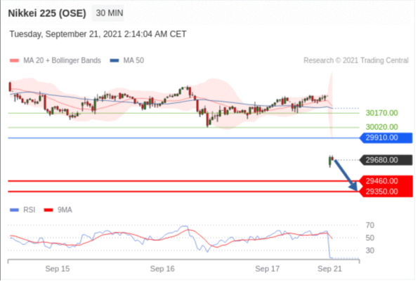 在 29910.00 之下,看跌,目标价位为 29460.00 ,然后为 29350.00 。