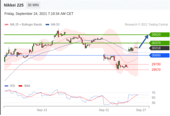交易策略: 在 30000 之上,看涨,目标价位为 30370 ,然后为 30620 。