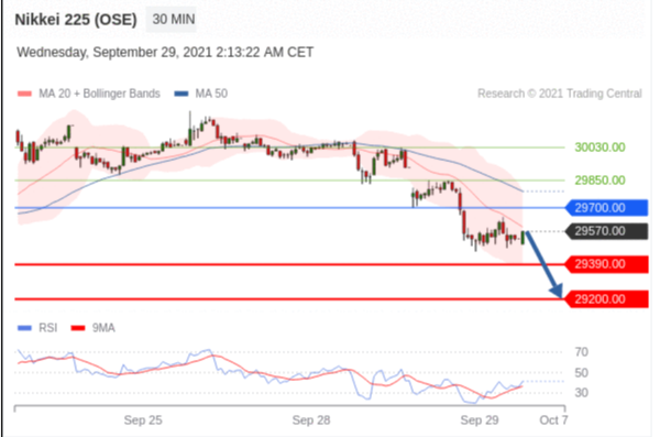 交易策略: 在 29700.00 之下,看跌,目标价位为 29390.00 ,然后为 29200.00 。