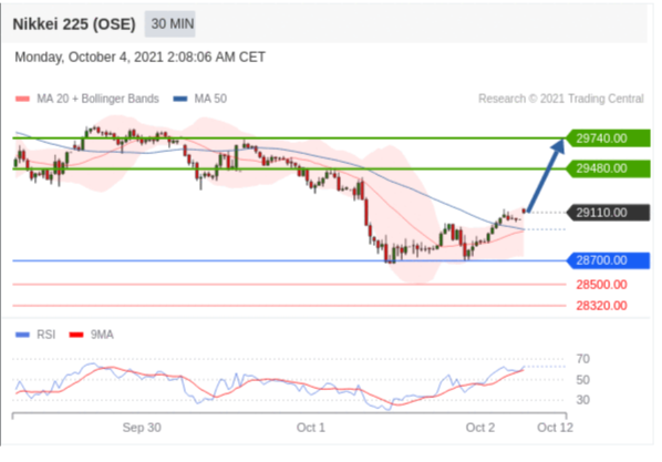 在 28700.00 之上,看涨,目标价位为 29480.00 ,然后为 29740.00 。