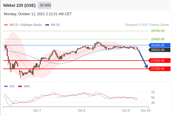 交易策略: 在 28180.00 之下,看跌,目标价位为 27620.00 ,然后为 27320.00 。