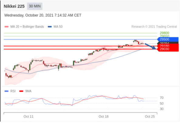交易策略: 在 29500 之下,看跌,目标价位为 29180 ,然后为 29030 。