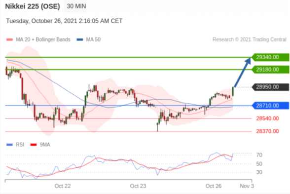 交易策略: 在 28710.00 之上,看涨,目标价位为 29180.00 ,然后为 29340.00 。