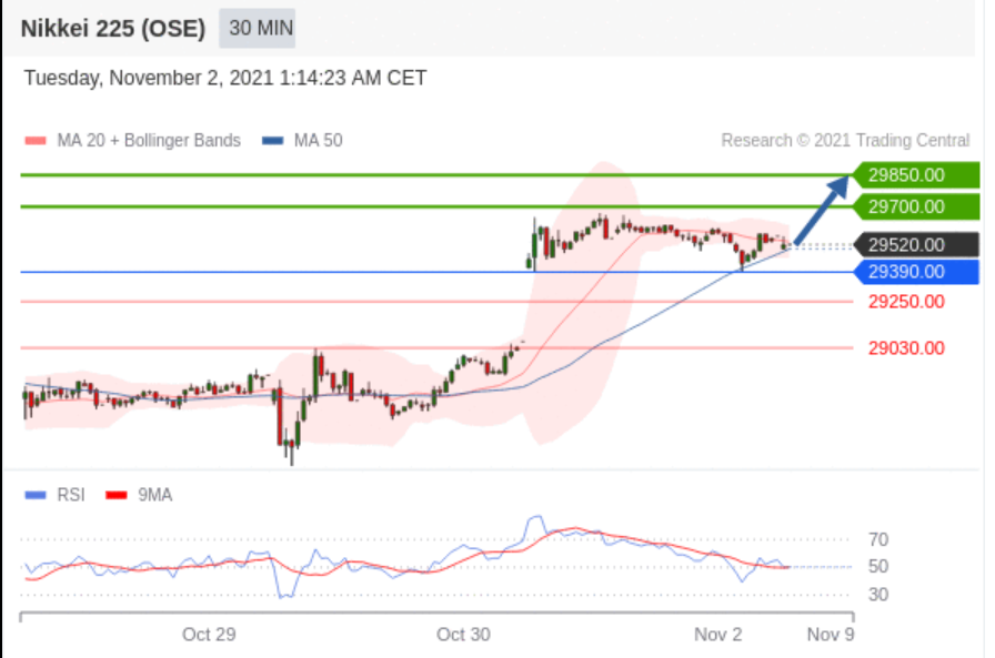 交易策略: 在 29390.00 之上,看涨,目标价位为 29700.00 ,然后为 29850.00 。