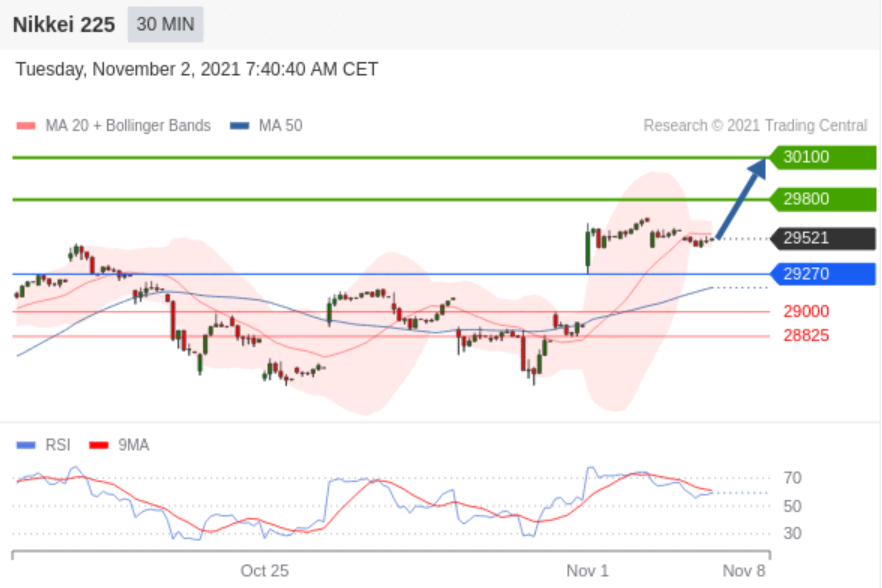 在英伟达公布强劲业绩、缓解市场对人工智能板块估值的担忧后,日本股市周四(11月20日)上涨,结束此前连续四日下跌的走势。 日经225指数盘中一度攀升至关键心理关口 50,000 点上方,午后涨势有所回落,最终收涨 2.7%,报 49,823.94 点;更广泛的 东证指数上涨 1.7%。 在主板市场上,涨幅领先的板块包括有色金属、电器(