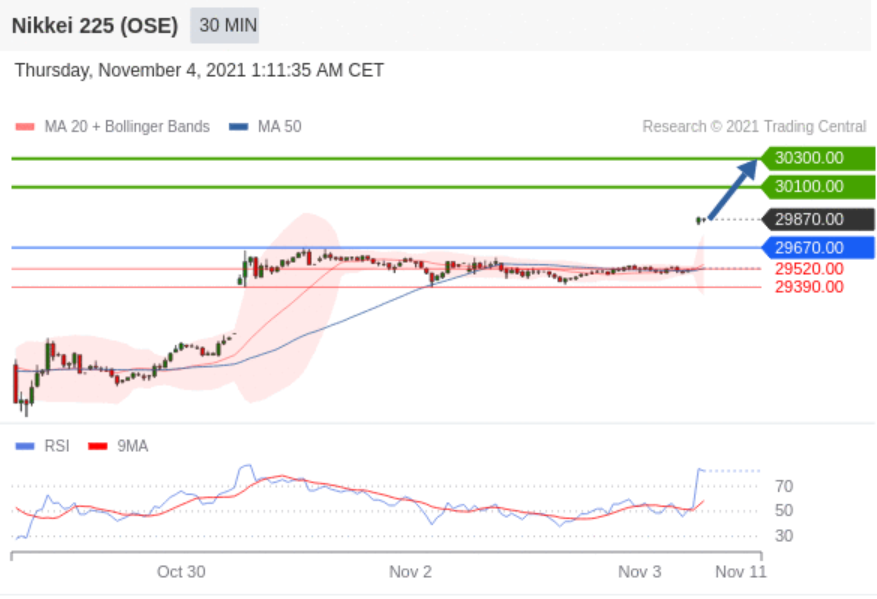 交易策略: 在 29670.00 之上,看涨,目标价位为 30100.00 ,然后为 30300.00 。