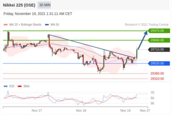 交易策略: 在 29520.00 之上,看涨,目标价位为 29840.00 ,然后为 29970.00 。