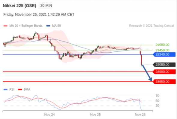 交易策略: 在 29340.00 之下,看跌,目标价位为 28900.00 ,然后为 28650.00 。