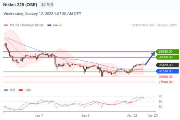 交易策略: 在 28230.00 之上,看涨,目标价位为 28660.00 ,然后为 28830.00 。