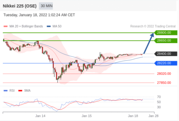 交易策略: 在 28220.00 之上,看涨,目标价位为 28650.00 ,然后为 28800.00 。