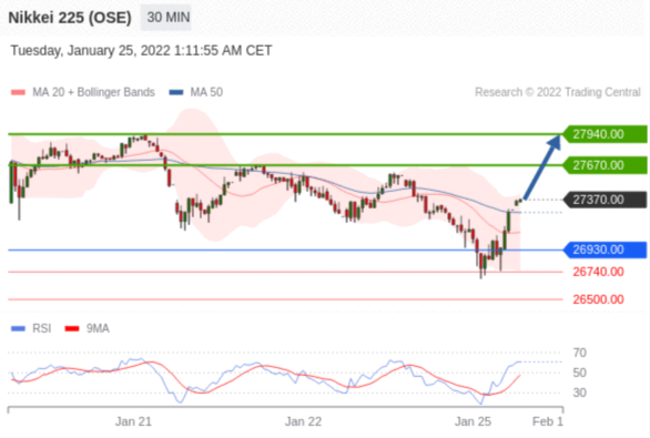 技术点评: 随后的阻力位是27670.00,然后为27940.00。