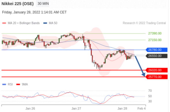 交易策略: 在 26780.00 之下,看跌,目标价位为 26020.00 ,然后为 25770.00 。