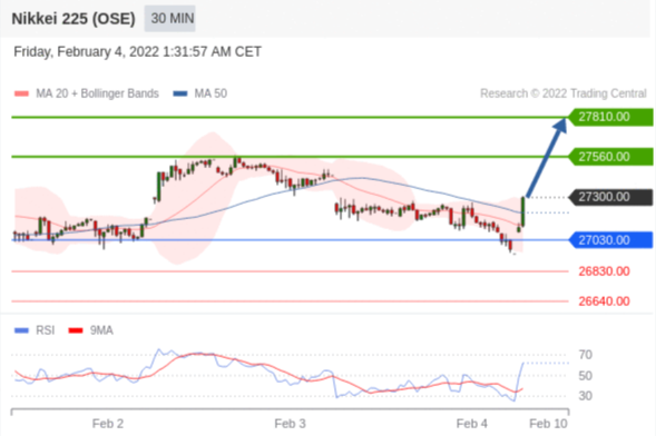 交易策略: 在 27030.00 之上,看涨,目标价位为 27560.00 ,然后为 27810.00 。