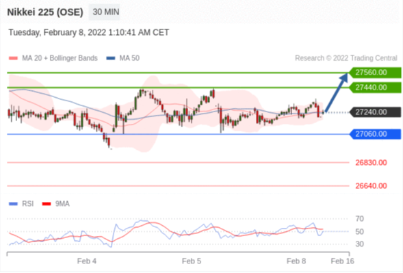 在 27060.00 之上,看涨,目标价位为 27440.00 ,然后为 27560.00 。