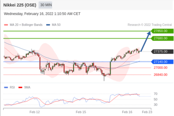 交易策略: 在 27140.00 之上,看涨,目标价位为 27680.00 ,然后为 27850.00 。